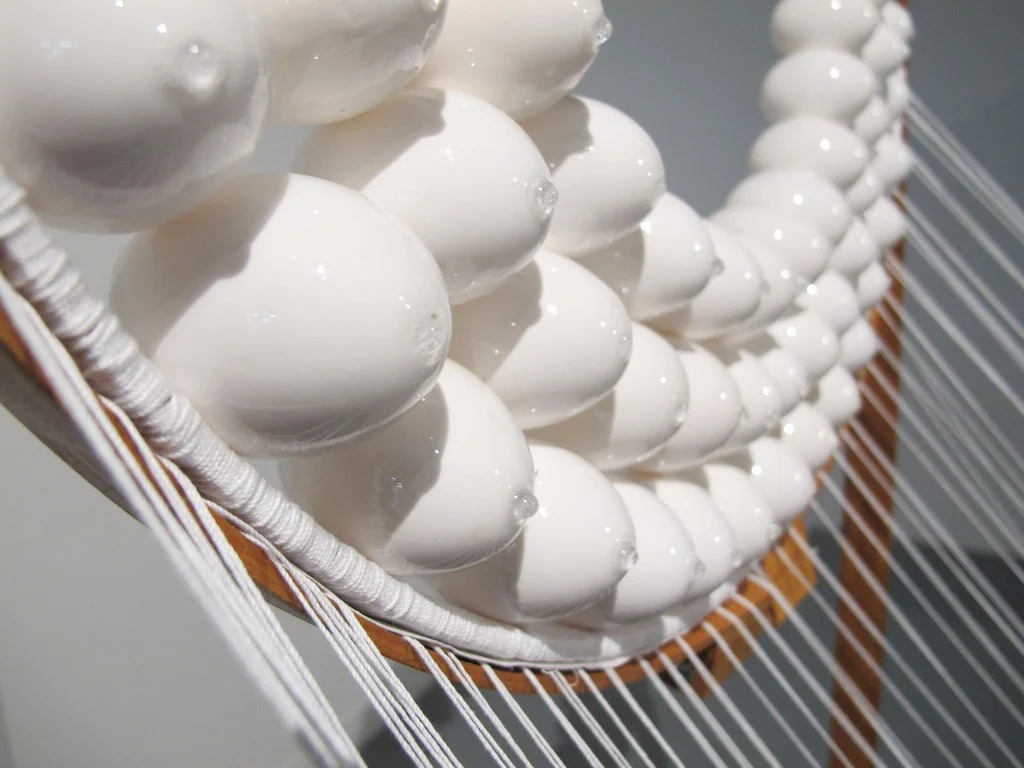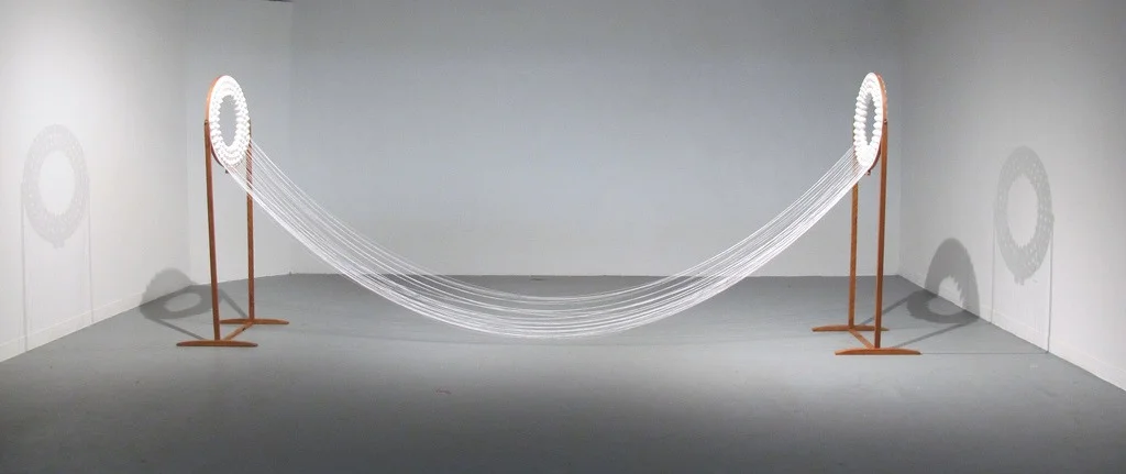 Dana Lynn Harper. Dreamcatcher. Eggshells, resin, string, embroidery hoops, 5.5’ x 13’ x 2’.
